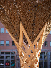 In einem gemeinsamen Projekt der Professuren Design of Structures (DOS) und Digital Design and Fabrication (DDF) des Instituts Entwerfen und Bautechnik (IEB) der KIT-Fakultät für Architektur und dem Unternehmen FibR GmbH wurde ein erster Forschungsdemonstrator entwickelt, der mit Hilfe von Studierenden aufgebaut wurde und derzeit erprobt wird. Das Projekt ist Bestandteil der Erforschung von Beschattungsstrukturen für den mikro-klimatischen Komfort im urbanen Kontext. In der Forschung geht es u.a. um die elastische Biegung für die Erzeugung komplexer Geometrien sowie die Anwendung von biobasierten Materialien (Holz und Flachsfaser) im Bauwesen.